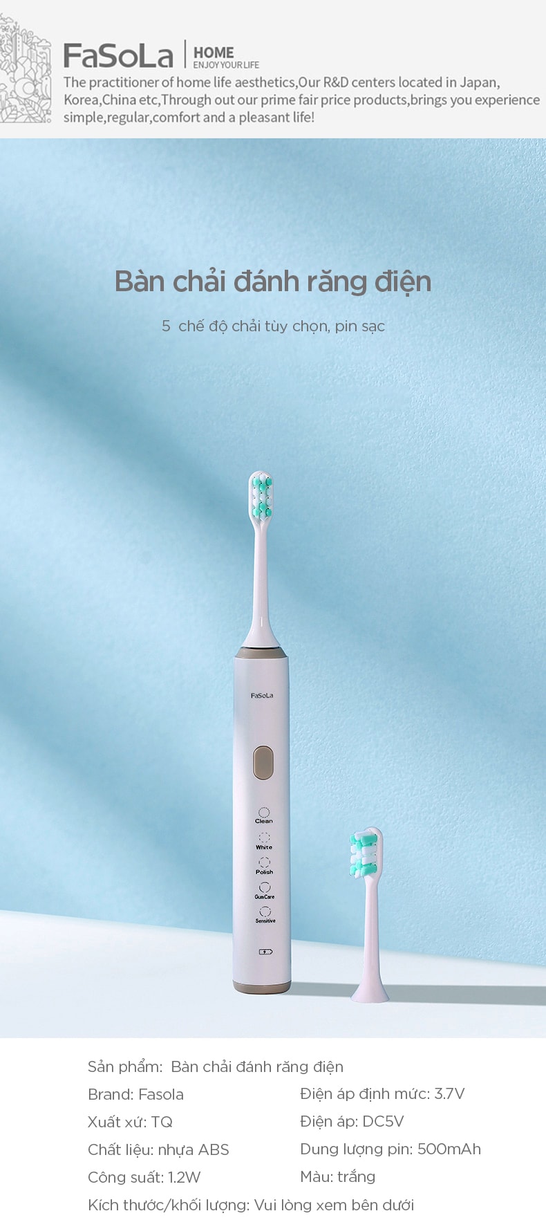 - Bàn chải đánh răng điện sạc FSLJY-356