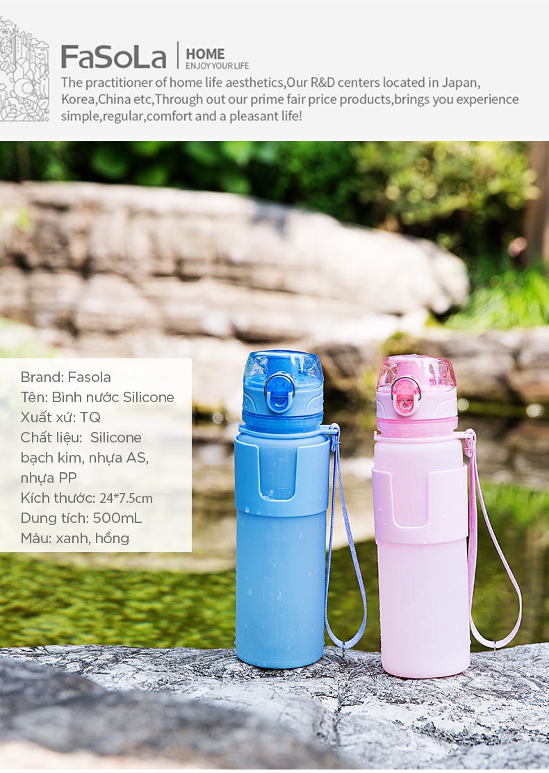 - Bình nước thể thao silicon 500ML gấp gọn FSLQJ-0029