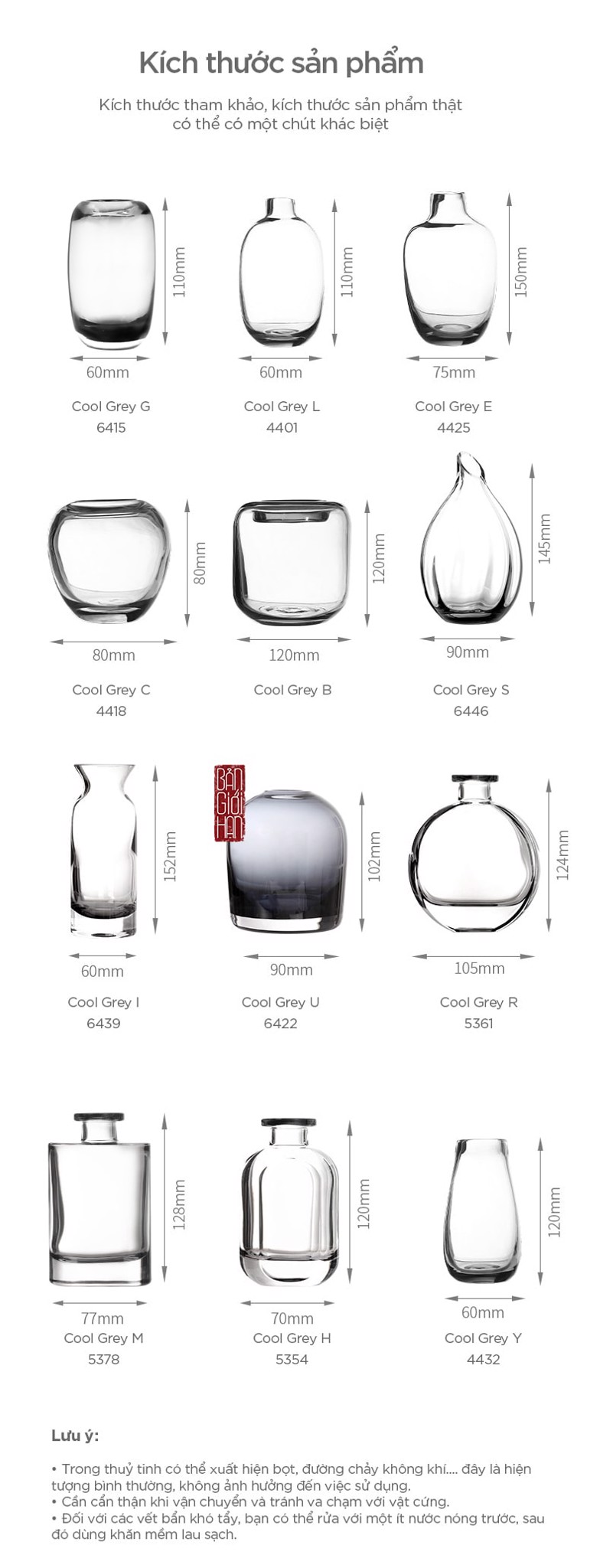 - [FaSoLa] Bình thủy tinh thủ công Yên Vũ Sa Châu màu xám khói FSLFL-159