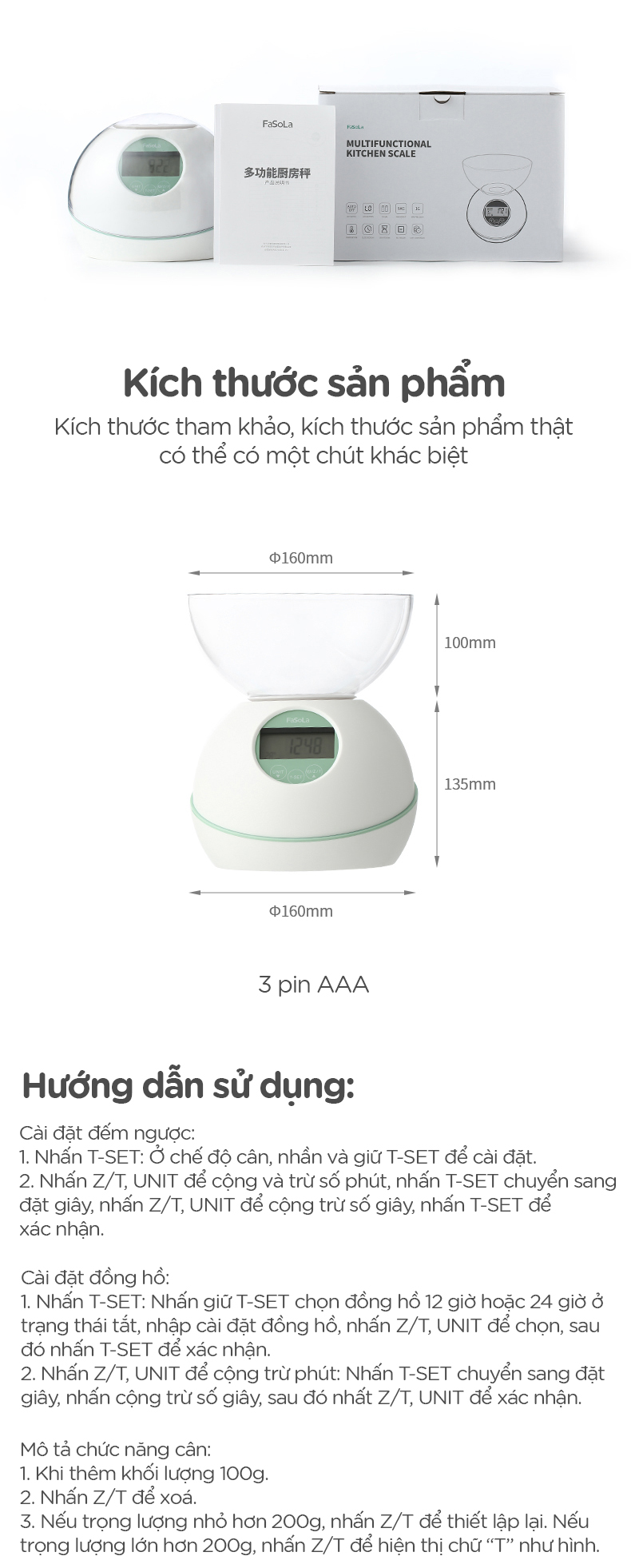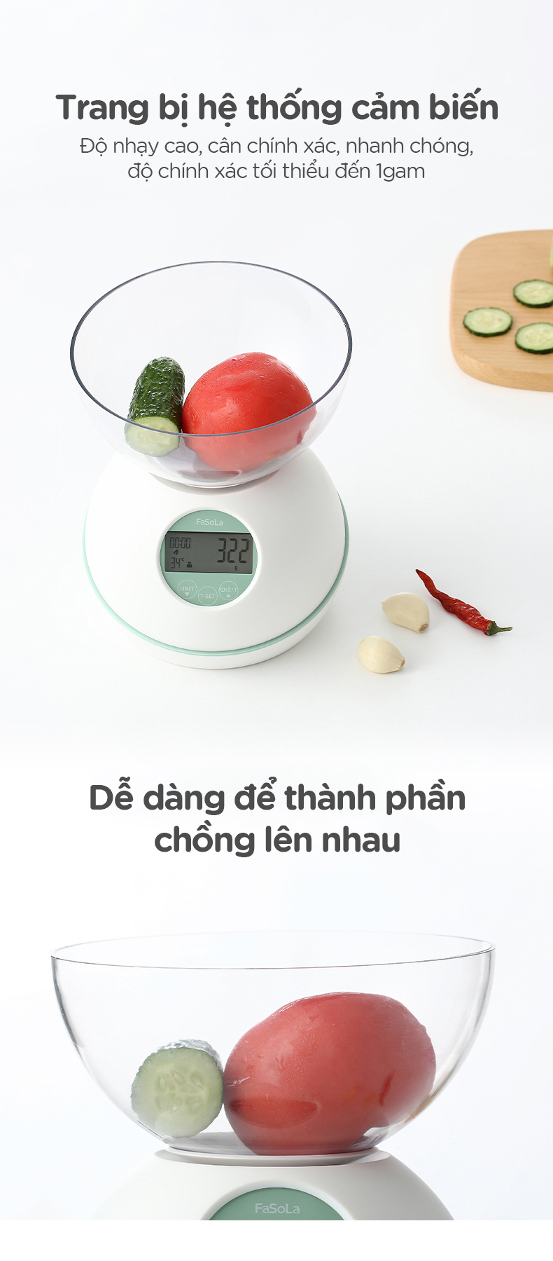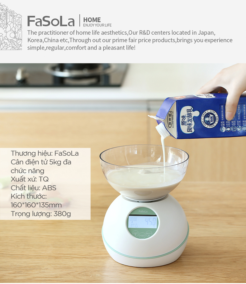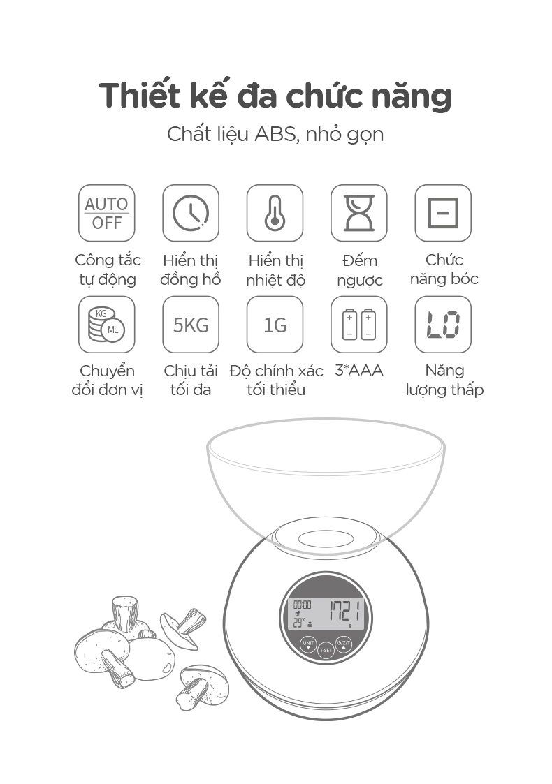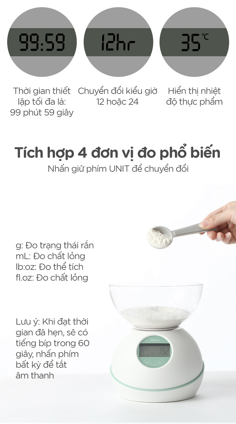 - Cân điện tử 5kg đa chức năng, đếm giờ, đo nhiệt độ FSLRY-315C