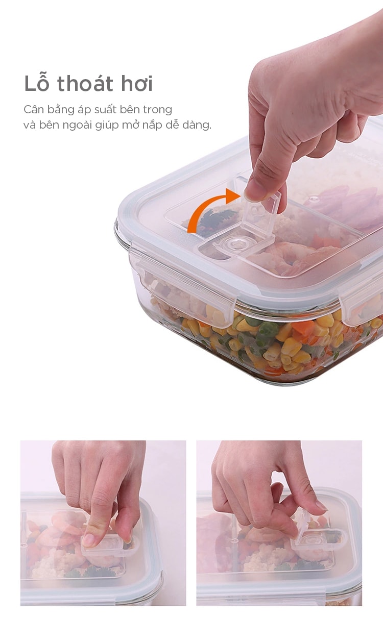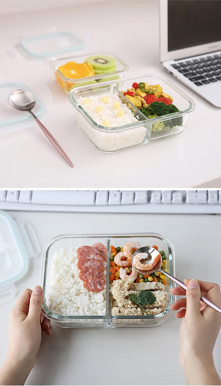 Hộp thủy tinh loại tốt, chịu nhiệt (hâm được trong lò vi sóng), nắp có khóa gài là loại hộp được ưa chuộng nhất trên thị trường vì cảm giác an toàn mà nó mang lại cho người sử dụng. Đối với dân văn phòng, nhất là phái nữ, đem theo một chiếc hộp thủy tinh đựng cơm trưa, hoặc chỉ đơn giản là ít miếng trái cây ăn trong giờ giải lao để bổ sung vitamin cũng là nhu cầu bồi bổ thiết yếu cho bản thân.