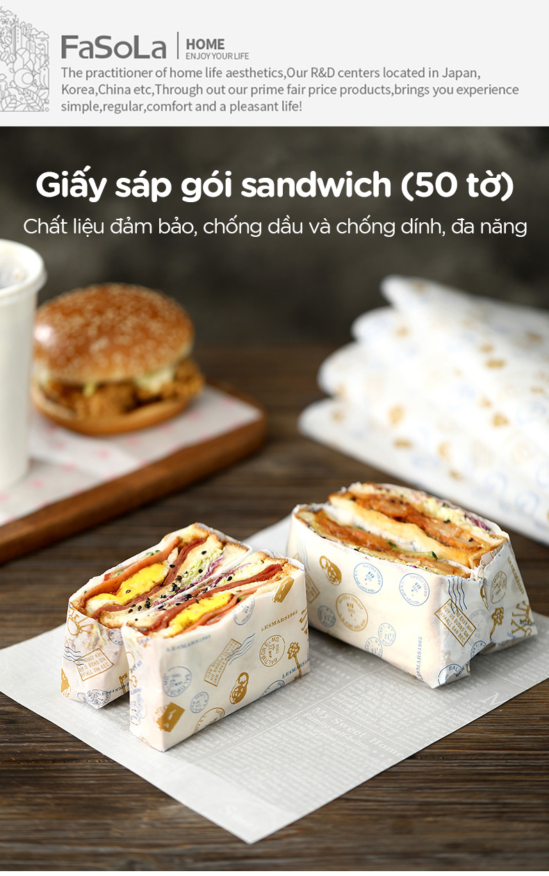 Giấy sáp không thấm dầu gói sandwich (50 tờ) FSLDZ-512
