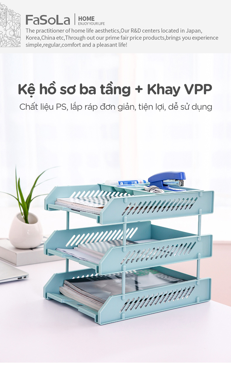 Giá đựng tài liệu hồ sơ 3 tầng kèm khay đựng văn phòng phẩm FSLDZ-285