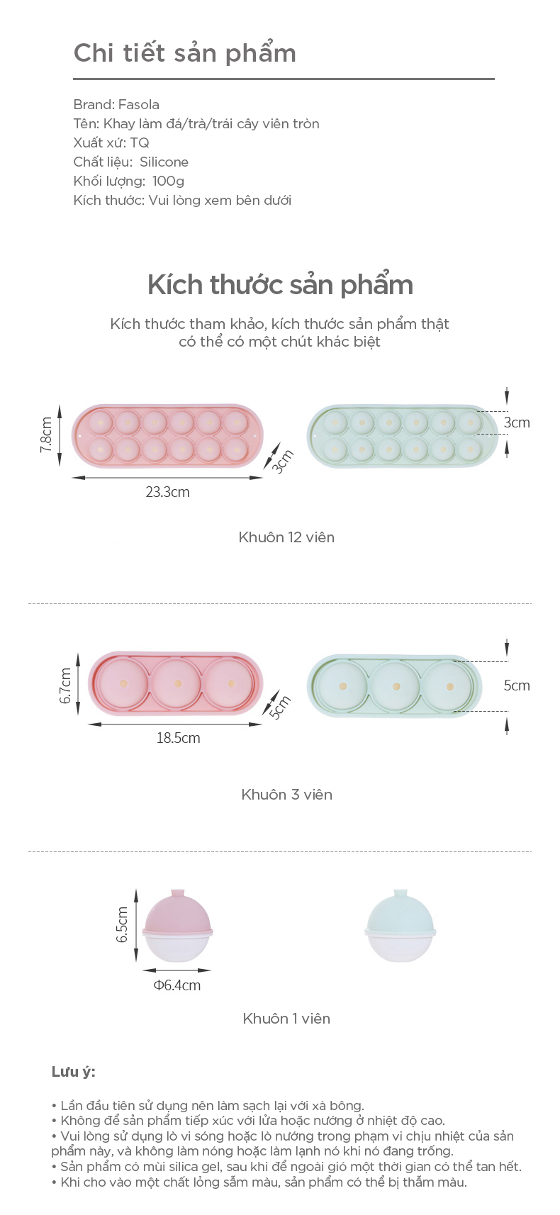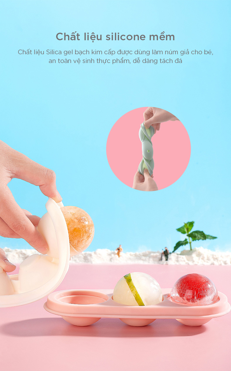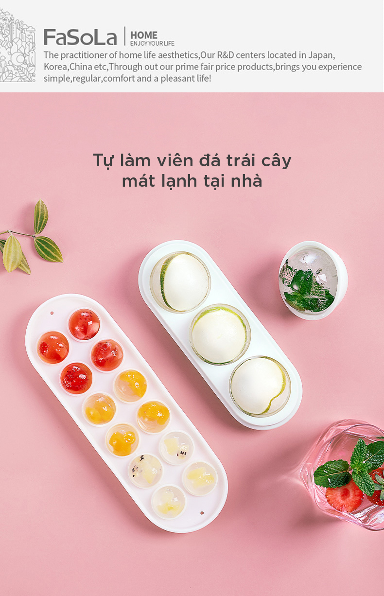 - Khay làm đá, trà, kem trái cây 3 viên tròn silicone Fasola FSLYL-006