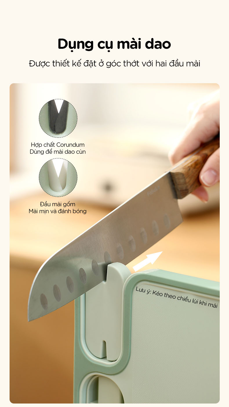 Thớt nhựa chống trượt đa năng kèm đồ mài dao FSLSH-269