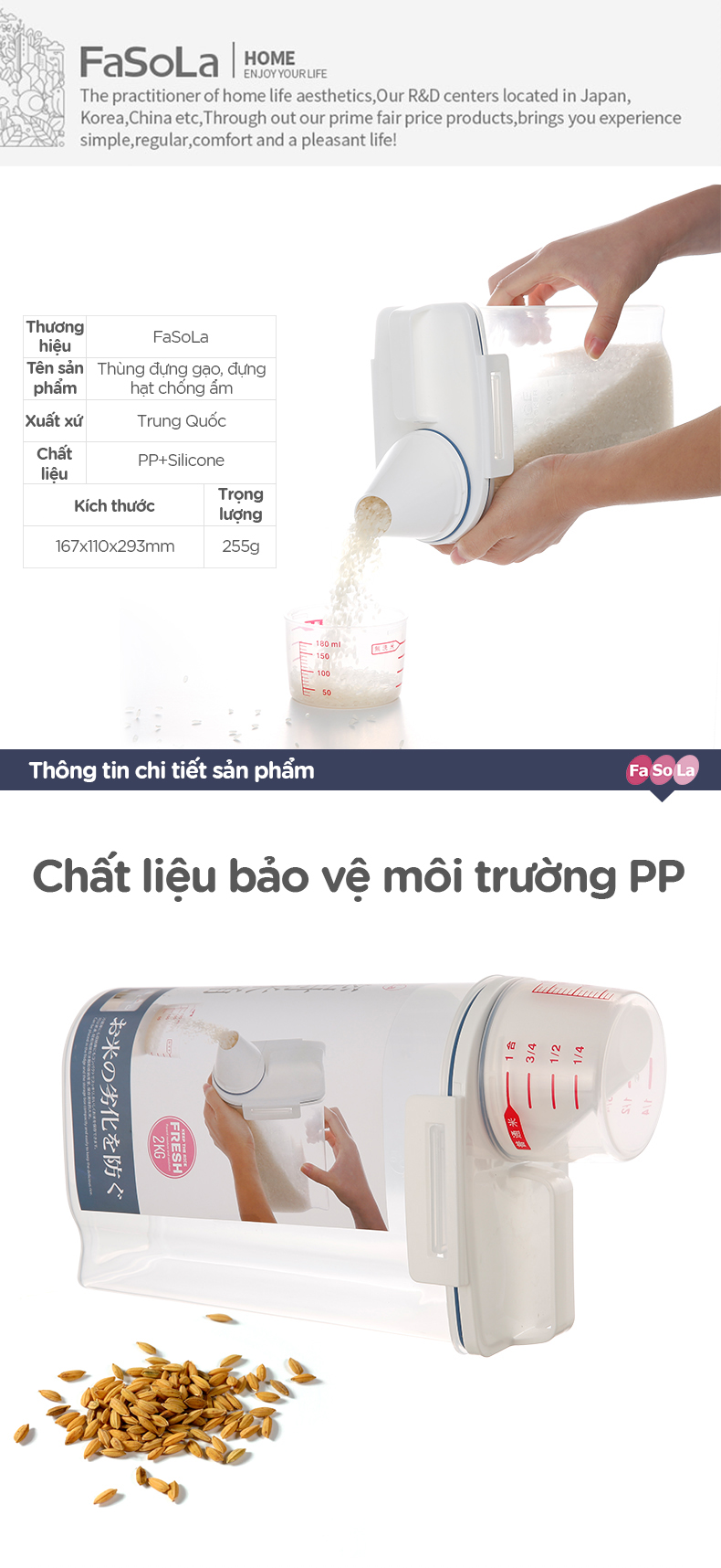 - Hộp đựng gạo, hạt chống ẩm 2.5L FSLRY-178